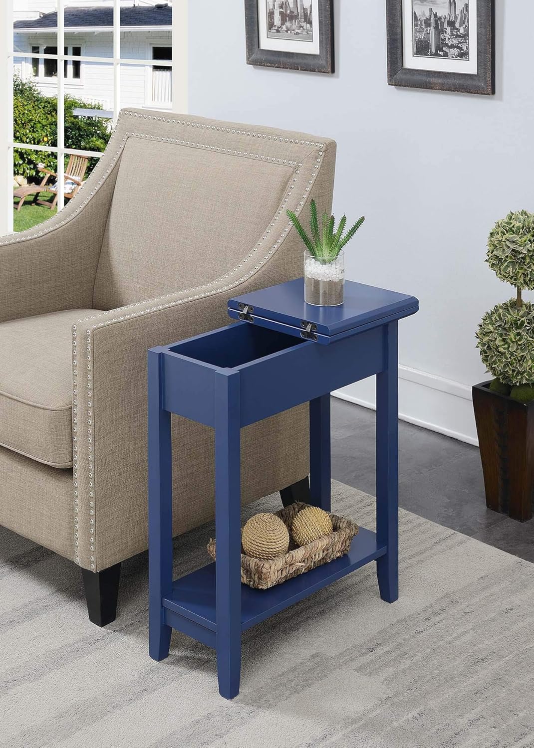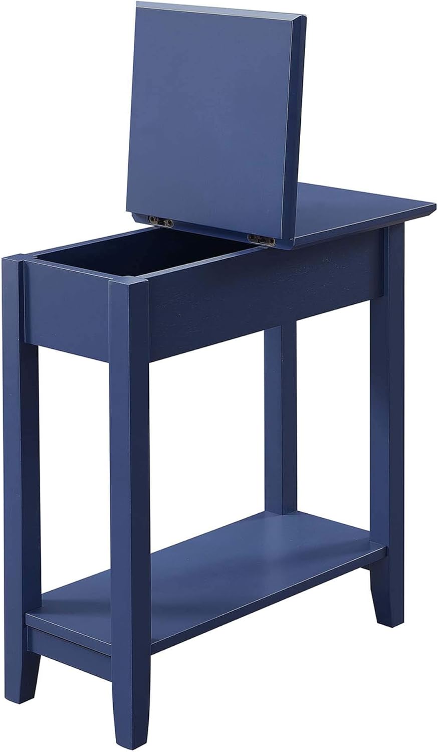 The American Heritage Flip Top End Table with Shelf by Convenience Concepts is the perfect solution for keeping entertainment essentials close by! This stylish yet functional end table features a hidden flip-top storage compartment. Open the tabletop to reveal plenty of space to store remote controls, charging cables, books, and much more. In addition to the flip-top storage compartment, a bottom shelf offers additional space for display or storage. Engineered from MDF, particleboard, and poplar wood, this table is built to last. In addition, this beautiful classic table is finished with a birch veneer for easy maintenance. Coordinating with current furnishings is easy thanks to the wide variety of finishes available. Shop the complete American Heritage Collection by Convenience Concepts, each sold separately.