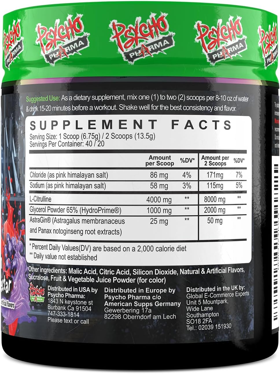 PUMP it up. Pump it way up! Psycho Pharma’s EDGE PUMP contains an All-star combination of the most up to date effective nitric oxide boosters. (Vein Nectar). Allstar combination of the most effective Nitric Oxide (NO) boosters at max doses for a crazy pump with ZERO Stimulants. Great Flavors: Vein Nectar (Welches` Grape/Watermelon) and Veinorade (Gatorade)