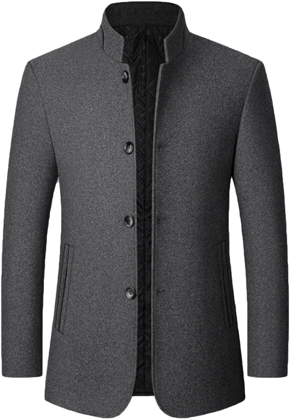 Men's Wool Trench Jacket & Coat Warm Quilted Single Breasted Band Collar Fall Long Sleeve Winter Button Fit Slim PeacoatSize GuideTag size XL = US size Small,Tag size 2XL = US size Medium,Tag size 3XL = US size Large,Tag size 4XL = US size X-Large