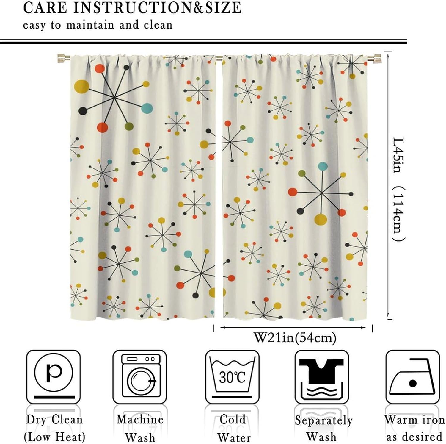 Curtains Package Includes:Blackout Window Curtains 2 panelsSize:1 panel measures 21 (W) x 45(L). The pair of 2 panels together measures 42" (W) x 45" (L) .1 panel measures 21 (W) x 54(L). The pair of 2 panels together measures 42" (W) x 54" (L) .1 panel measures 21 (W) x 63(L). The pair of 2 panels together measures 42" (W) x 63" (L) .1 panel measures 27.5 (W) x 63(L). The pair of 2 panels together measures 55" (W) x 63" (L) .1 panel measures 31.5 (W) x 63(L). The pair of 2 panels together measures 63" (W) x 63" (L) .1 panel measures 31.5 (W) x 72(L). The pair of 2 panels together measures 63" (W) x 72" (L) .1 panel measures 36 (W) x 63(L). The pair of 2 panels together measures 72" (W) x 63" (L) .1 panel measures 42 (W) x 84(L). The pair of 2 panels together measures 84" (W) x 84" (L) .1 panel measures 26 (W) x 84(L). The pair of 2 panels together measures 52" (W) x 84" (L) .Various sizes are available.About the material:Polyester fabricNo chemical coating, no peculiar smell, healthier and safer for people, especially babies and kids. About the function:1:It can block more than 85% of the sunlight and provide privacy protection 2:Perfect for bedroom, living room, kitchen, cafe, office, bathroom, dining room, dorm, nursery, outdoor patio etc. 3:It is also one of the best gifts for your family, friends, relatives or yourself.Warm Notice:1:The pattern is only 1 side and the other is white.2:Due to manual measurement, please kindly allow a 1-2 cm discrepancy.